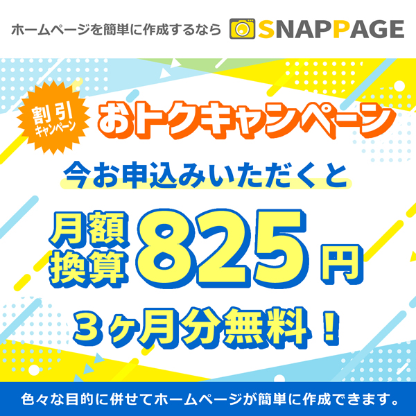 | URL(ドメイン) | https://(お好きな英数字).snappage.jp ※独自ドメインのご利用も可能です。 |